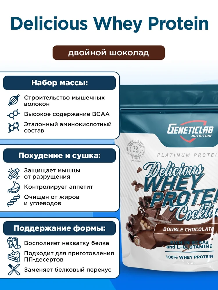 Порция: 30 г (2 мерные ложки). В упаковке 30 порций.БЖУ на 100 г (ориентировочно для линейки Delicious):