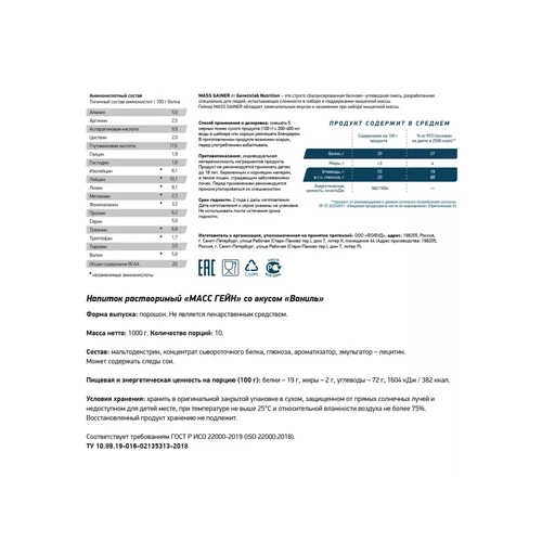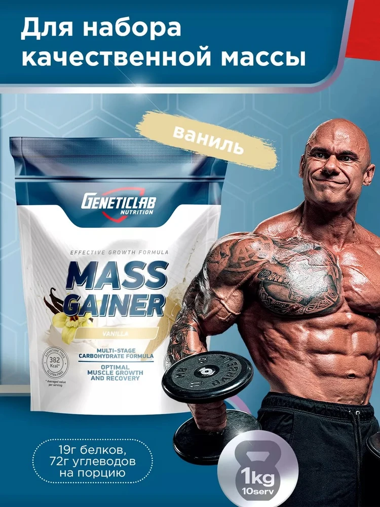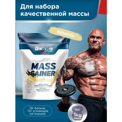 Высококалорийный белково углеводный гейнер Mass Gainer от Генетиклаб предназначен для питания профессиональных спортсменов и любителей, а также для тех, кто набирает массу. Соотношение углеводов к белку в нем равно 3:1. С каждой порцией белково-углеводоного коктеля вы обеспечите потребность организма в 20 граммах белка и 72 граммах углеводов . Белок необходим для поддержания процессов по построению и наращиванию мышечной массы, углеводы - для восстановления гликогеновых запасов и энергетических потребностей. Вместе они поддержат оптимальное восстановление организма. Белковая составляющая - это сывороточный концентрат, углеводная часть - это мальтодекстрин. Потребляя данный Geneticlab гейнер, вы поддержите чувство сытости длительное время. Углеводно-белковая смесь для максимально быстрого набора мышечной массы обязательно ускорит процесс набора
