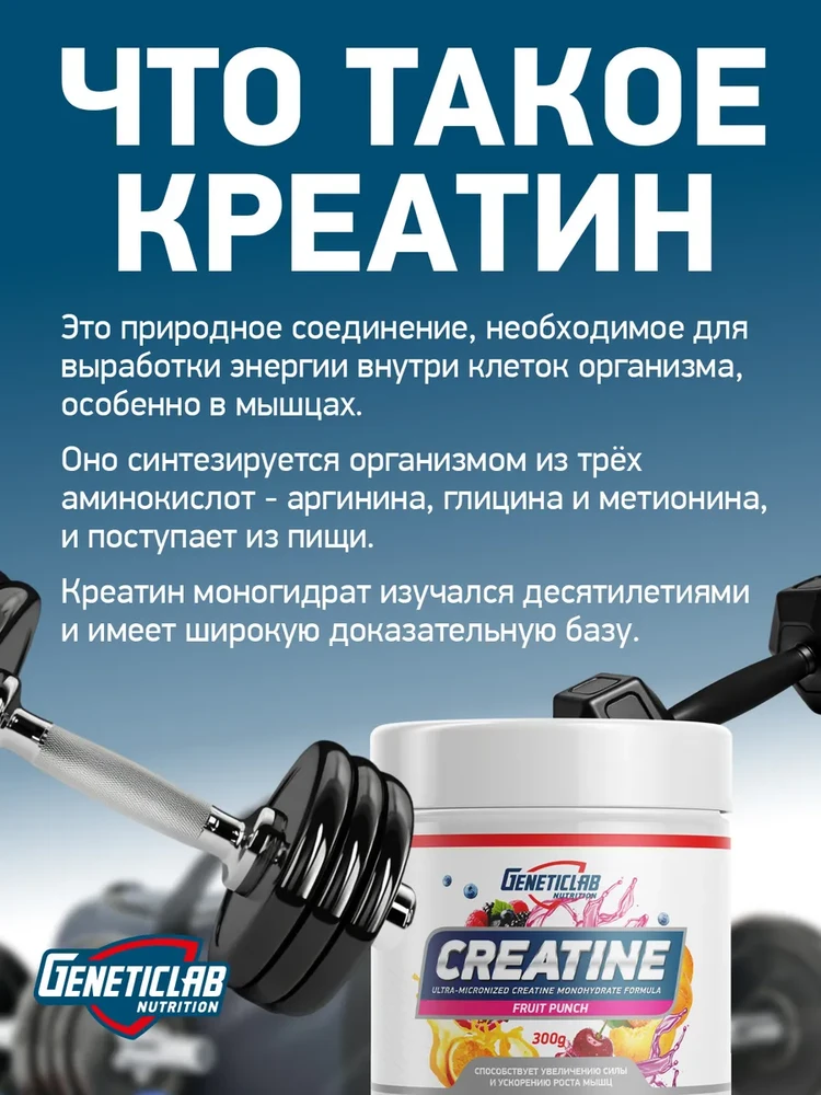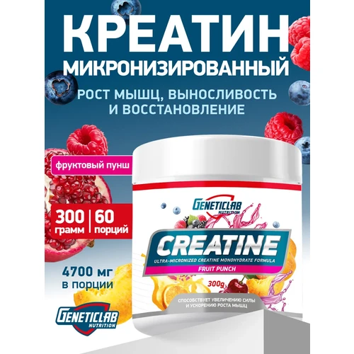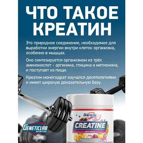 Повысьте эффективность тренировок с креатином Geneticlab со вкусом Фруктовый пунш! Креатин моногидрат — это ключевая добавка для любого атлета, стремящегося к максимальным результатам.