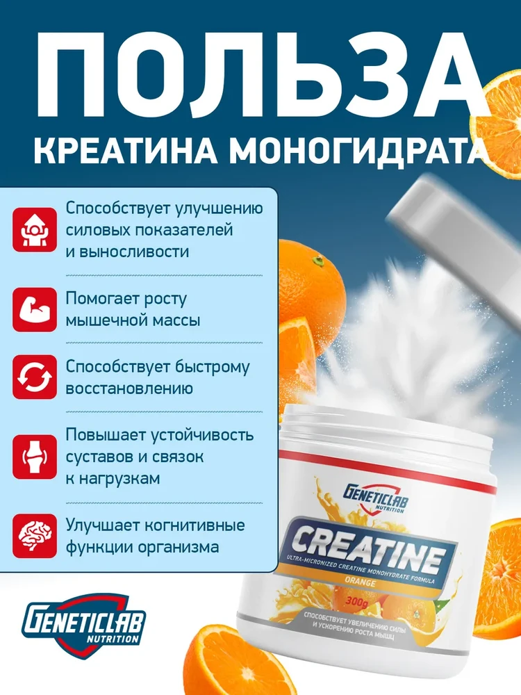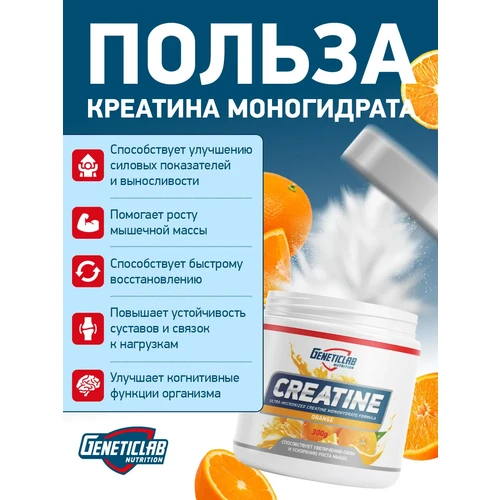 Geneticlab Creatine Monohydrate Апельсин: Мощный заряд силы с приятным вкусом!