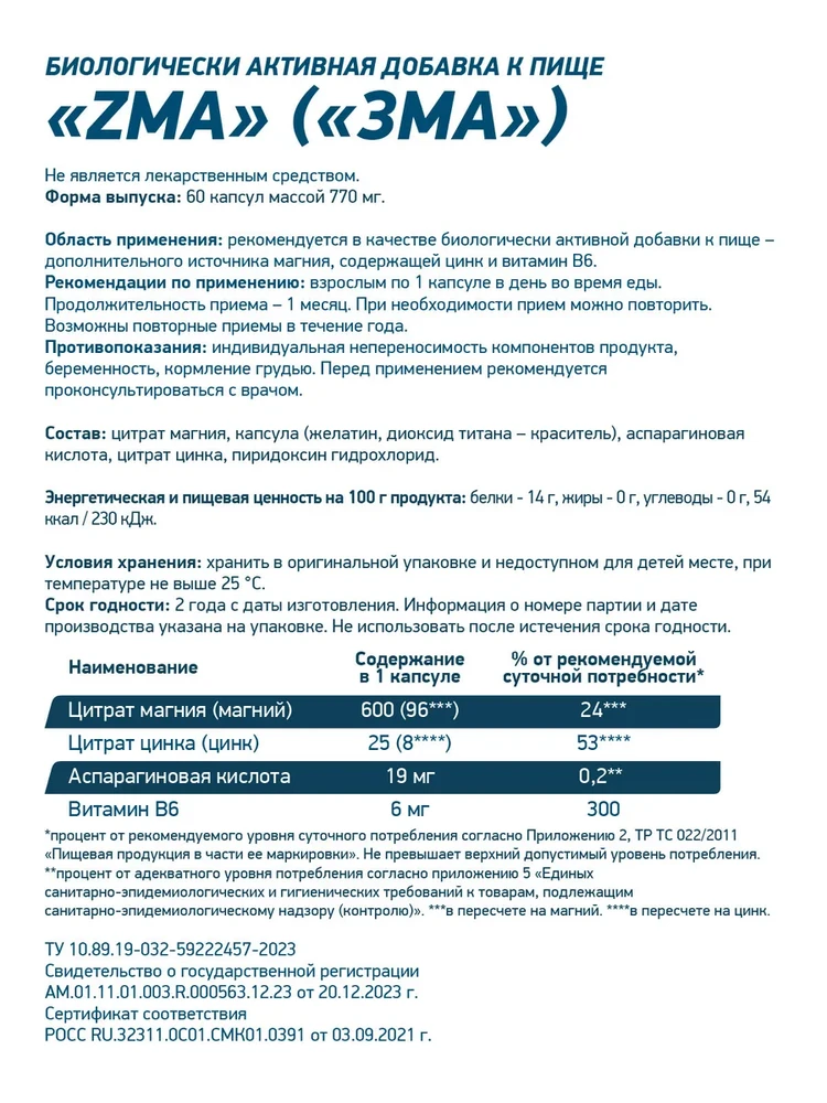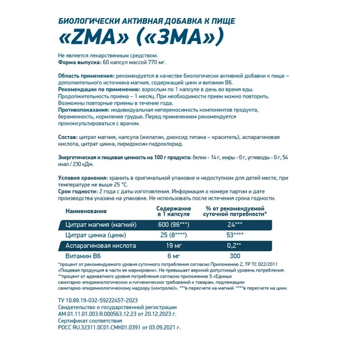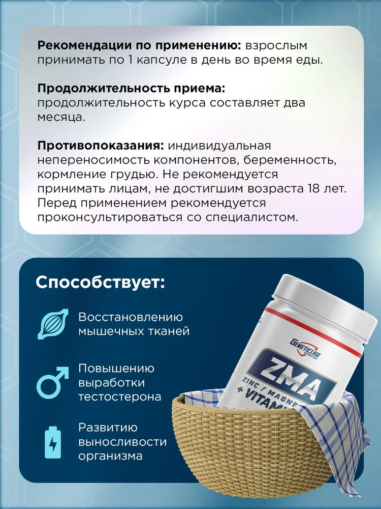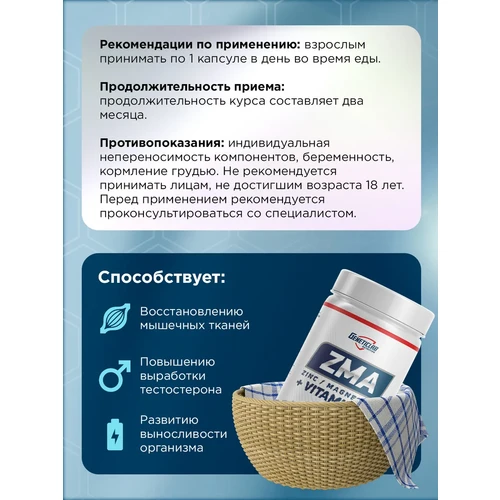 Улучшение качества сна: прием ZMA может способствовать более глубокому и спокойному сну, что критически важно для процессов восстановления.
