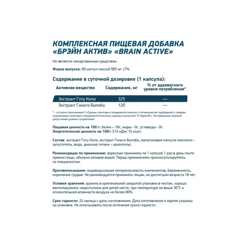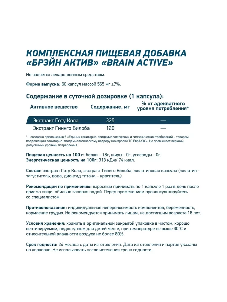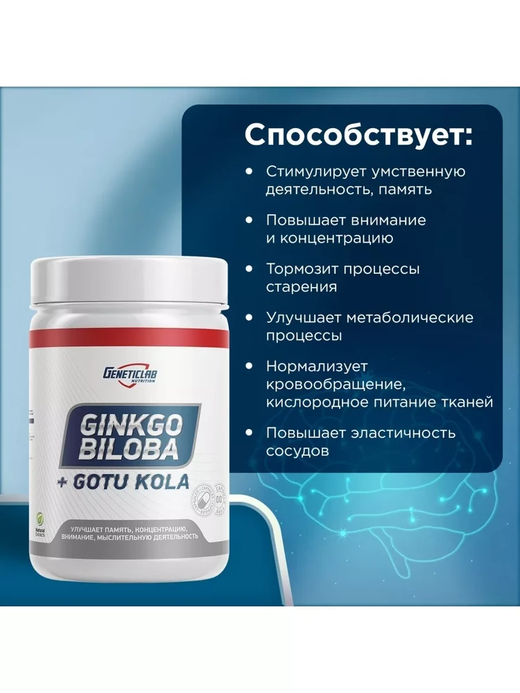 Поддержка когнитивных функций: улучшает память, внимание и концентрацию, повышает устойчивость клеток мозга к гипоксии (кислородному голоданию).