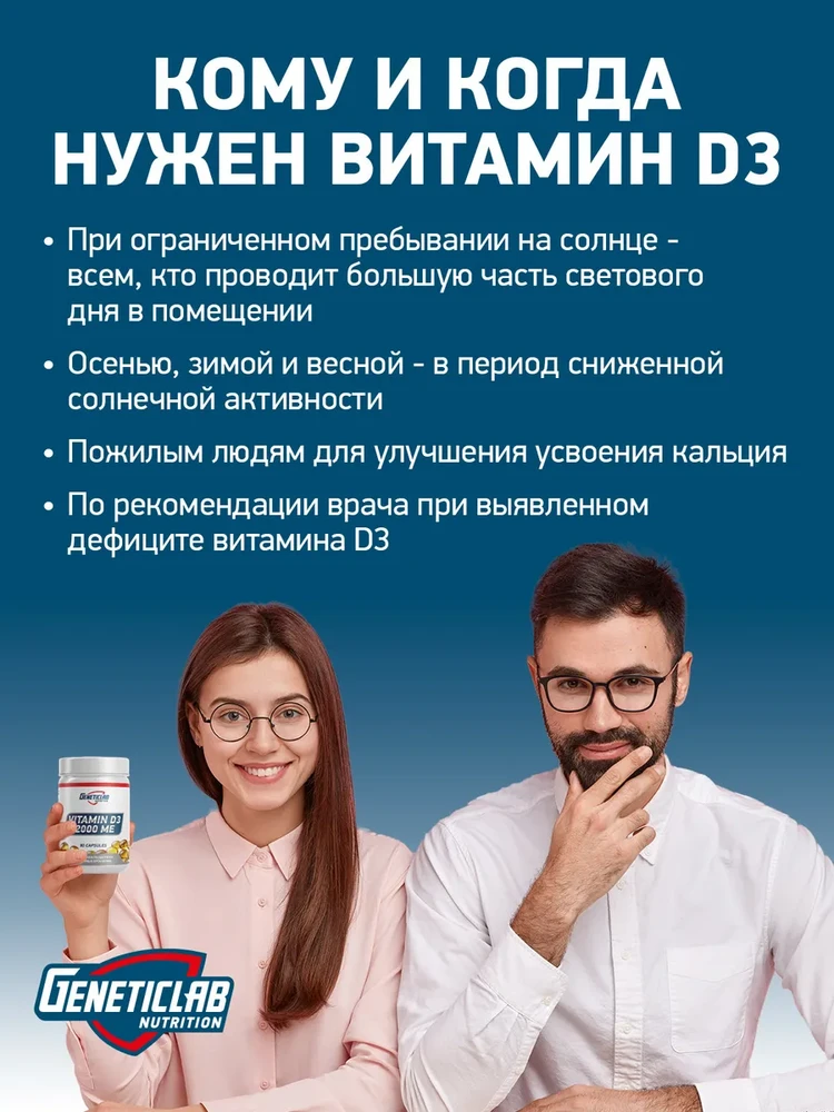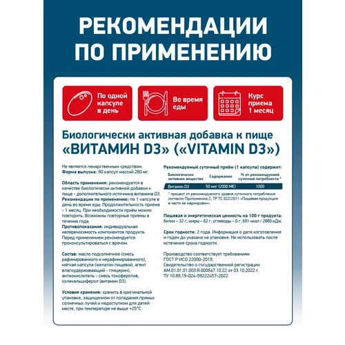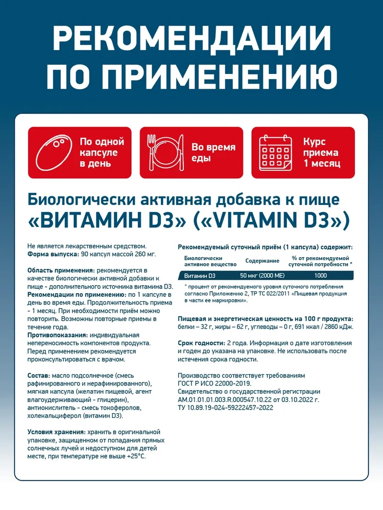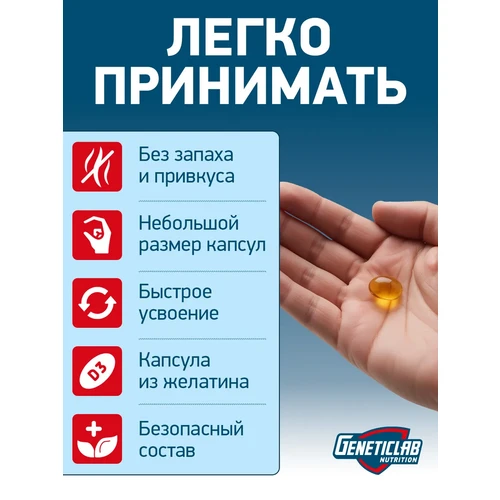 Высокая дозировка: Каждая капсула содержит 2000 МЕ (IU) активного вещества, что помогает эффективно восполнять дефицит витамина D, особенно актуальный в осенне-зимний период в северных широтах.
