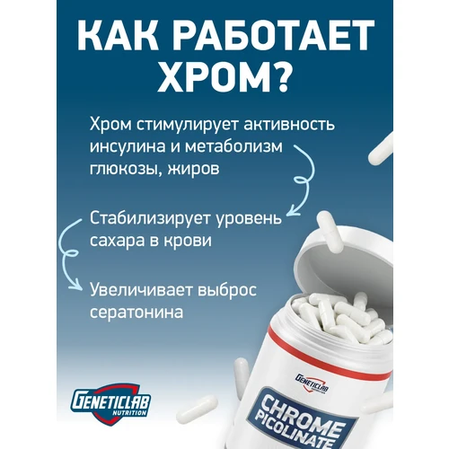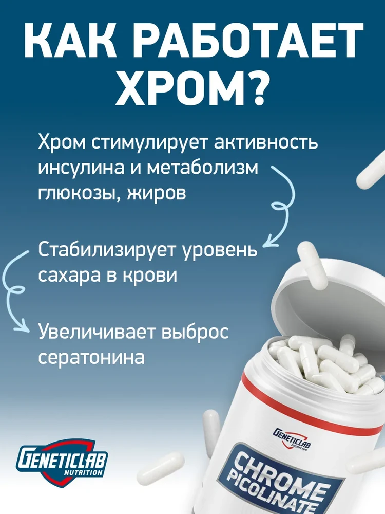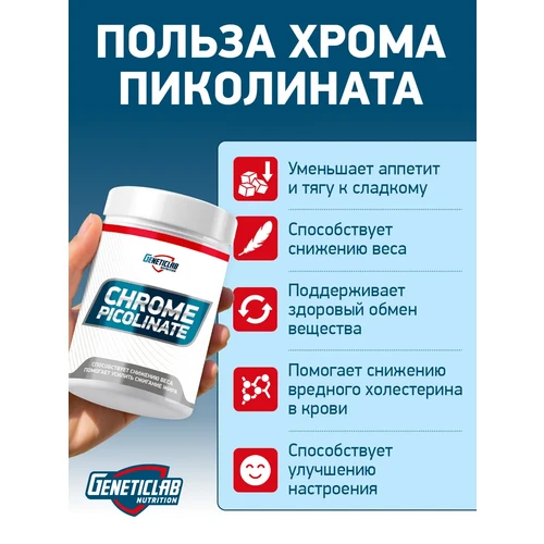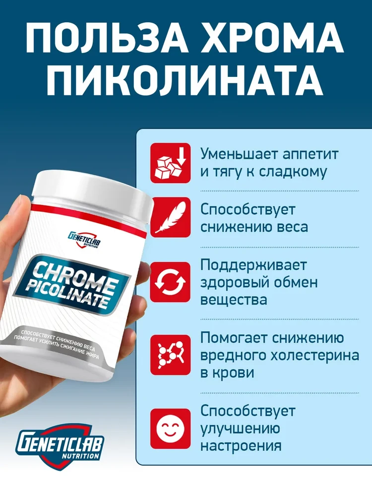 Пиколинат хрома помогает предотвращать резкие скачки уровня глюкозы в крови, которые вызывают острое чувство голода и желание съесть что-то сладкое.
