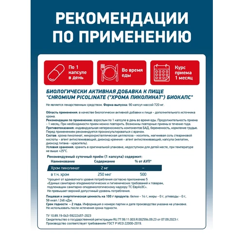 Обратите внимание: в некоторых источниках может быть указан только пиколинат хрома без инулина, поэтому важно проверять конкретную версию продукта на упаковке. Указанный продукт содержит оба компонента.