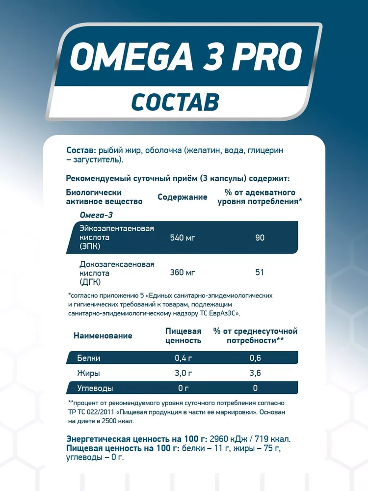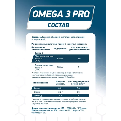Состав и применение Информация о составе и применении приведена для версии Geneticlab Nutrition Omega 3 Pro 1000 мг в упаковке 90 капсул, согласно данным производителя и ритейлеров.
