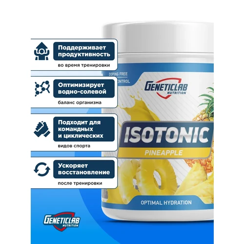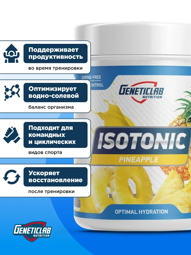Во время интенсивных нагрузок организм теряет воду и электролиты, что ведет к сгущению крови, повышенной нагрузке на сердце и резкому спаду сил. Изотоник от Geneticlab решает эти проблемы, обеспечивая организм всем необходимым в режиме реального времени.