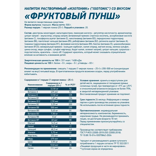 Технические характеристики (актуально на 2025 год) Вес: 500 г.Количество порций: 20 (из расчета 25 г на порцию).
