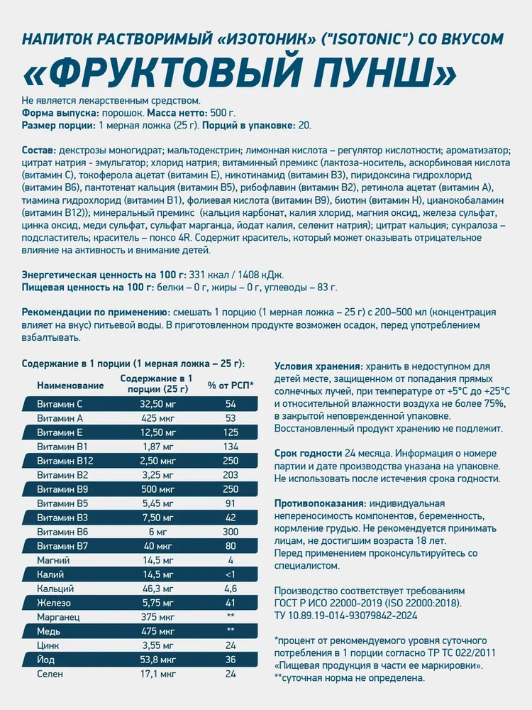Не является лекарственным средством. Подходит для профессионалов и любителей активного образа жизни.