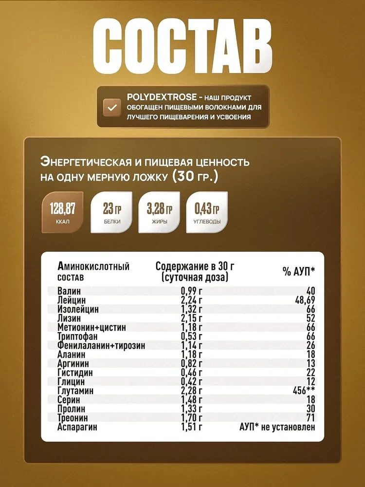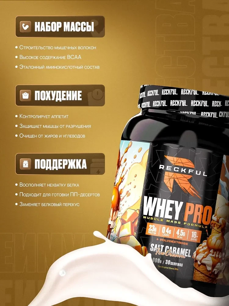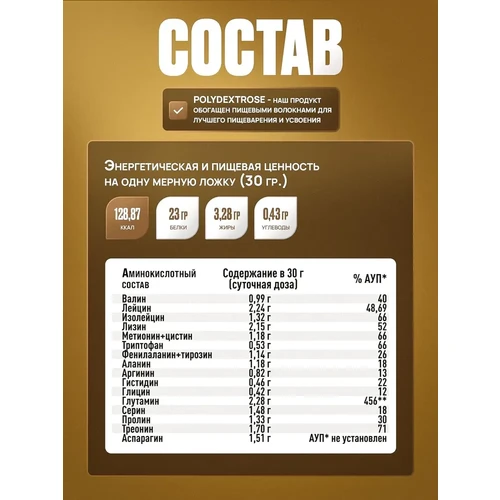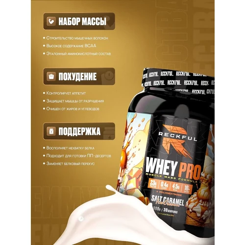 Это протеин, который работает как тренировка: помогает мышцам расти, восстанавливаться и держать форму, а тебе — чувствовать себя сытым и заряженным. В основе — сывороточный белок (быстро усваивается и идеально подходит после зала) плюс полидекстроза — мягкая растворимая клетчатка, которая добавляет сытости и делает коктейль комфортным для пищеварения. Вкус солёной карамели — как десерт из кофейни: сладко-сливочный, с лёгкой солёной ноткой. Пьётся легко, без приторности и без комков. Отличный вариант и для набора массы, и для поддержания белка в рационе, когда нет времени на полноценный перекус. Почему зайдёт: даёт качественный белок для восстановления и роста мышц лучше насыщает благодаря полидекстрозе удобные 30 порций в упаковке 900 г размешивается быстро — просто шейкер, вода/молоко и готово вкус, который хочется повторить.