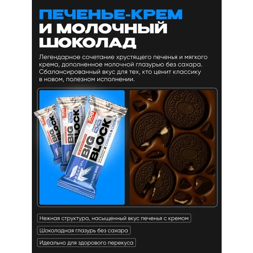 Вкус "Печенье-крем в молочной глазури" — это "будто Oreo ушли в спортзал и вернулись в форме". Он отличается насыщенным, узнаваемым вкусом печенья и нежной молочной глазурью. Батончик имеет плотную текстуру. Применение: