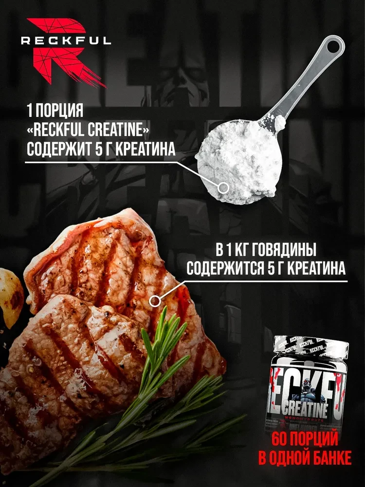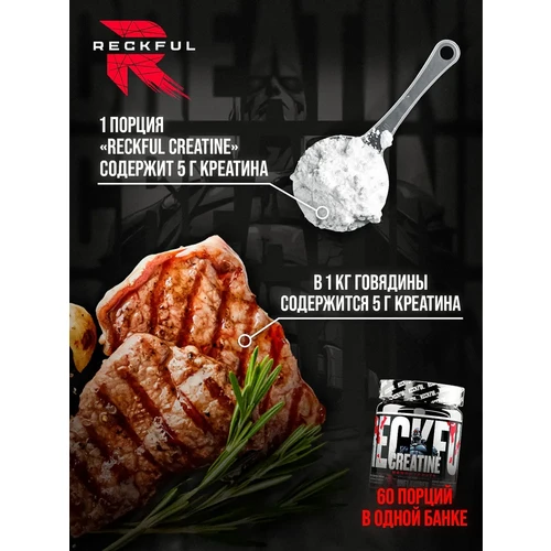 Дозировка: 1 порция (5 г — одна мерная ложка) в день.Приготовление: Смешайте 5 г порошка с 200–300 мл воды или сладкого сока (углеводы улучшают транспортировку креатина в мышцы).