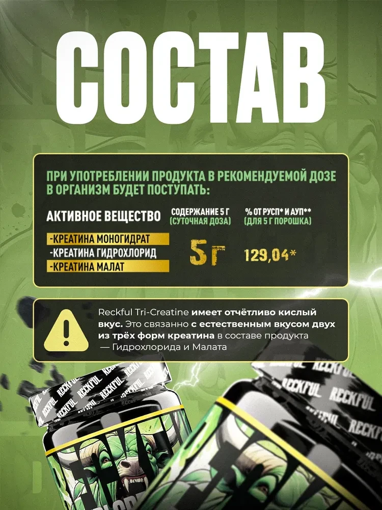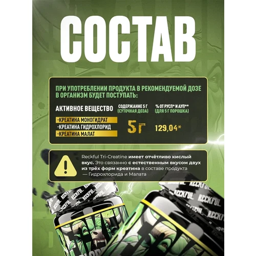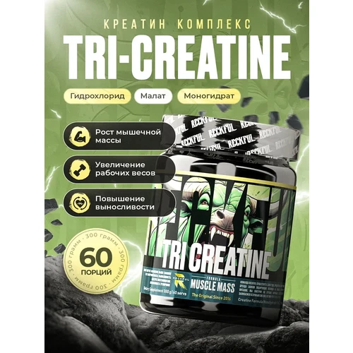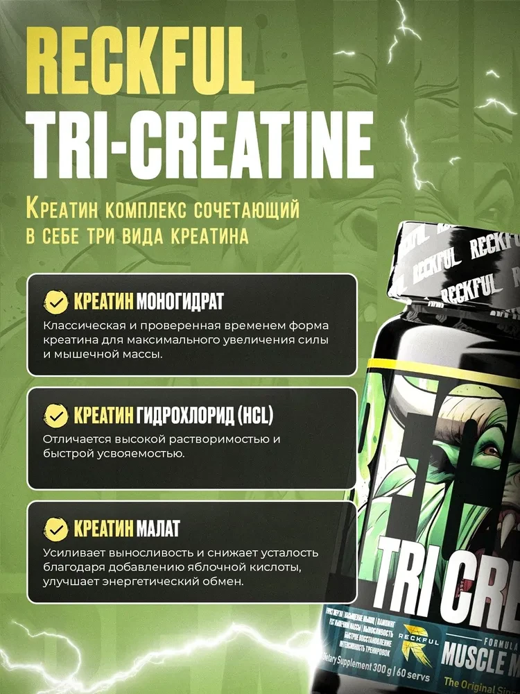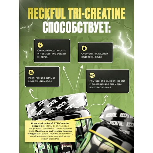 Комплексная формула Reckful ® Tri-Creatine обеспечивает более выраженный результат по сравнению с монопрепаратами.