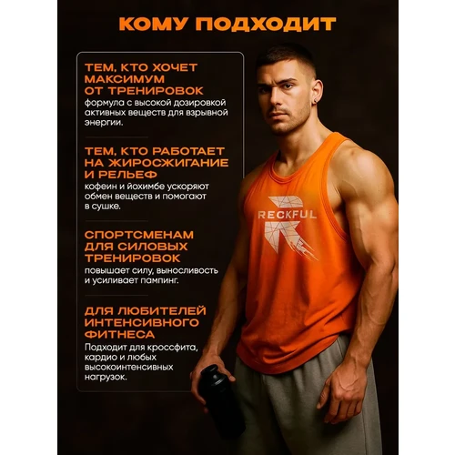 Стимуляция и фокус: Высокая концентрация кофеина и экстракта йохимбе мгновенно активирует центральную нервную систему, устраняет сонливость и повышает мотивацию.