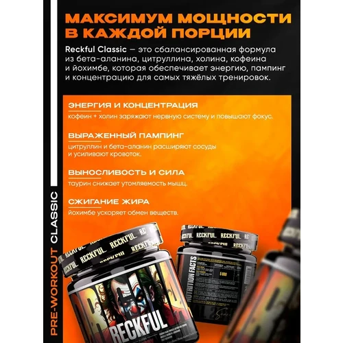 Интенсивный заряд бодрости и сил для продуктивных тренировок без резкого последующего спада энергии.