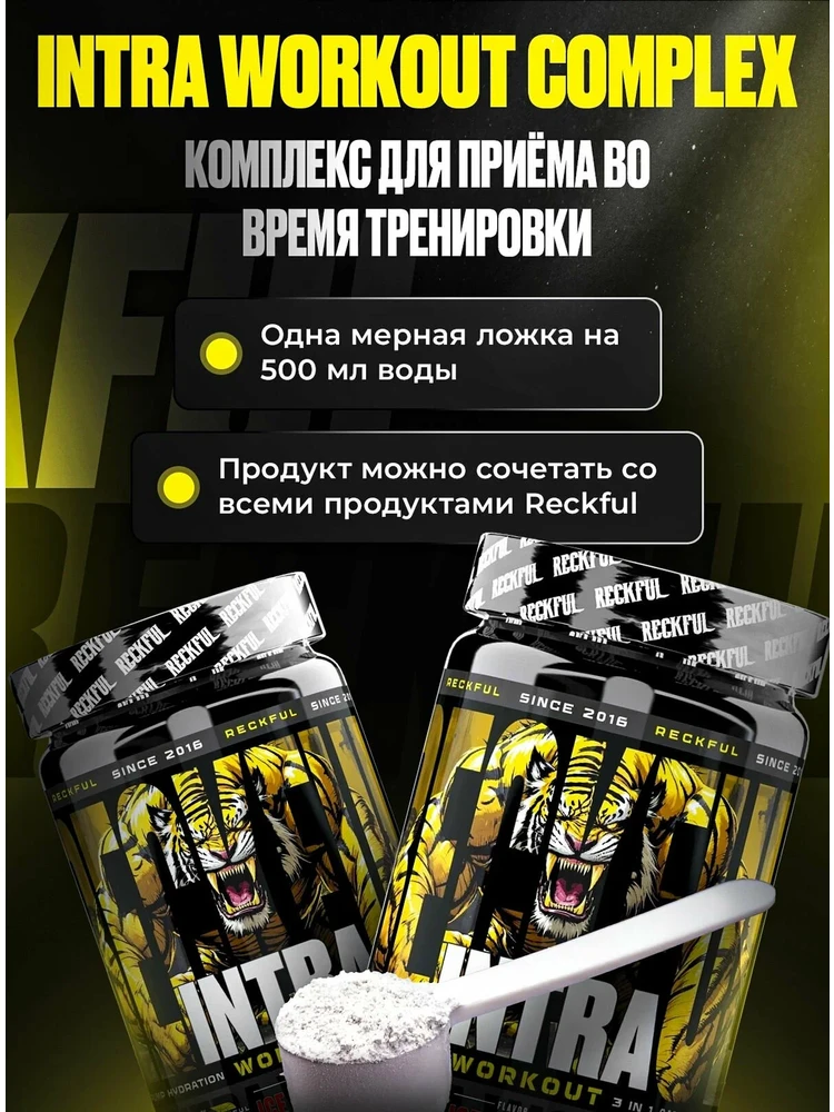 Продукт Reckful ® Intra Workout 450g (Green Apple) поставляется в банке весом 450 грамм, рассчитанной на 30 порций (по 15 г). Он представляет собой порошковую формулу без кофеина и сахара с ярким освежающим вкусом зеленого яблока.