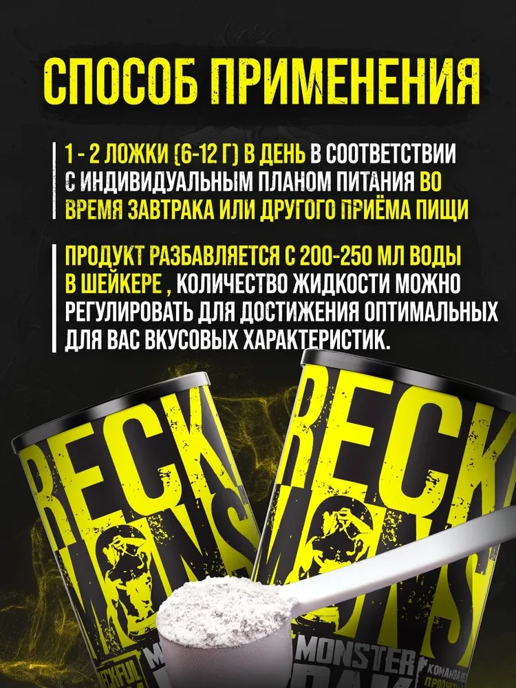 Reckful Monster Pak — это универсальный мультивитаминный комплекс премиум-класса в форме порошка со вкусом фруктового пунша (яркий и сладкий микс с нотками цитрусовых и ягод, который освежит после тренировки).