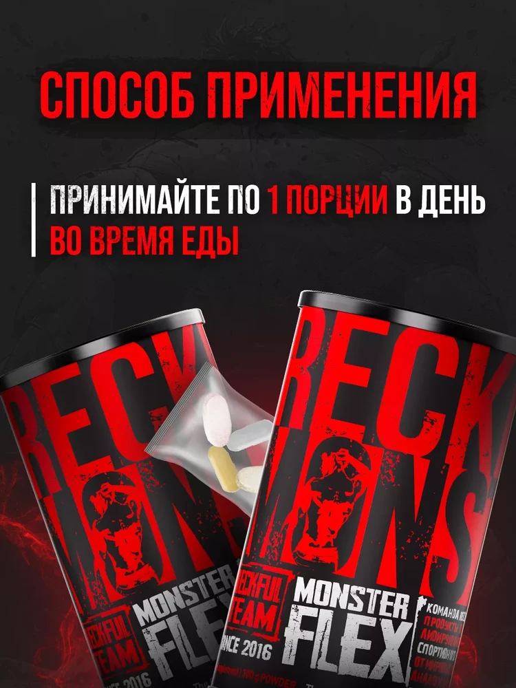 Monster Flex разработан для атлетов, работающих с большими весами, и людей с активным образом жизни, чьи суставы подвергаются повышенному износу.